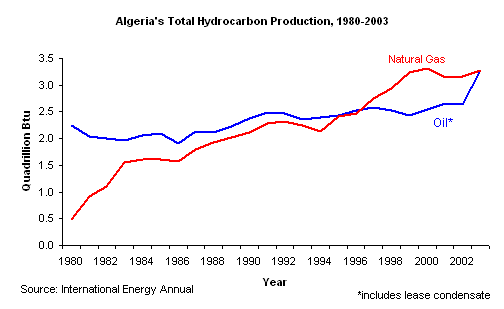 | Algerian oil production continues to increase, with a goal of reaching 2.0 million barrels per day (bbl/d) by 2010. | According to the Oil and Gas
